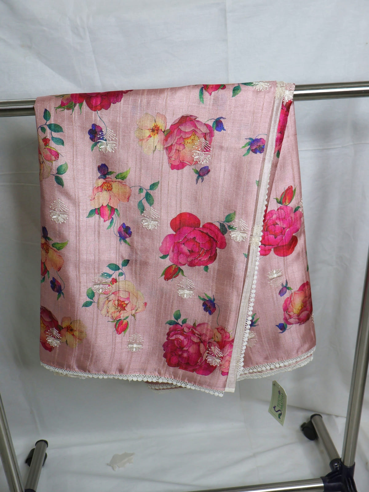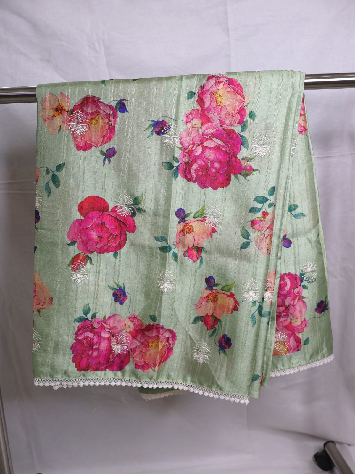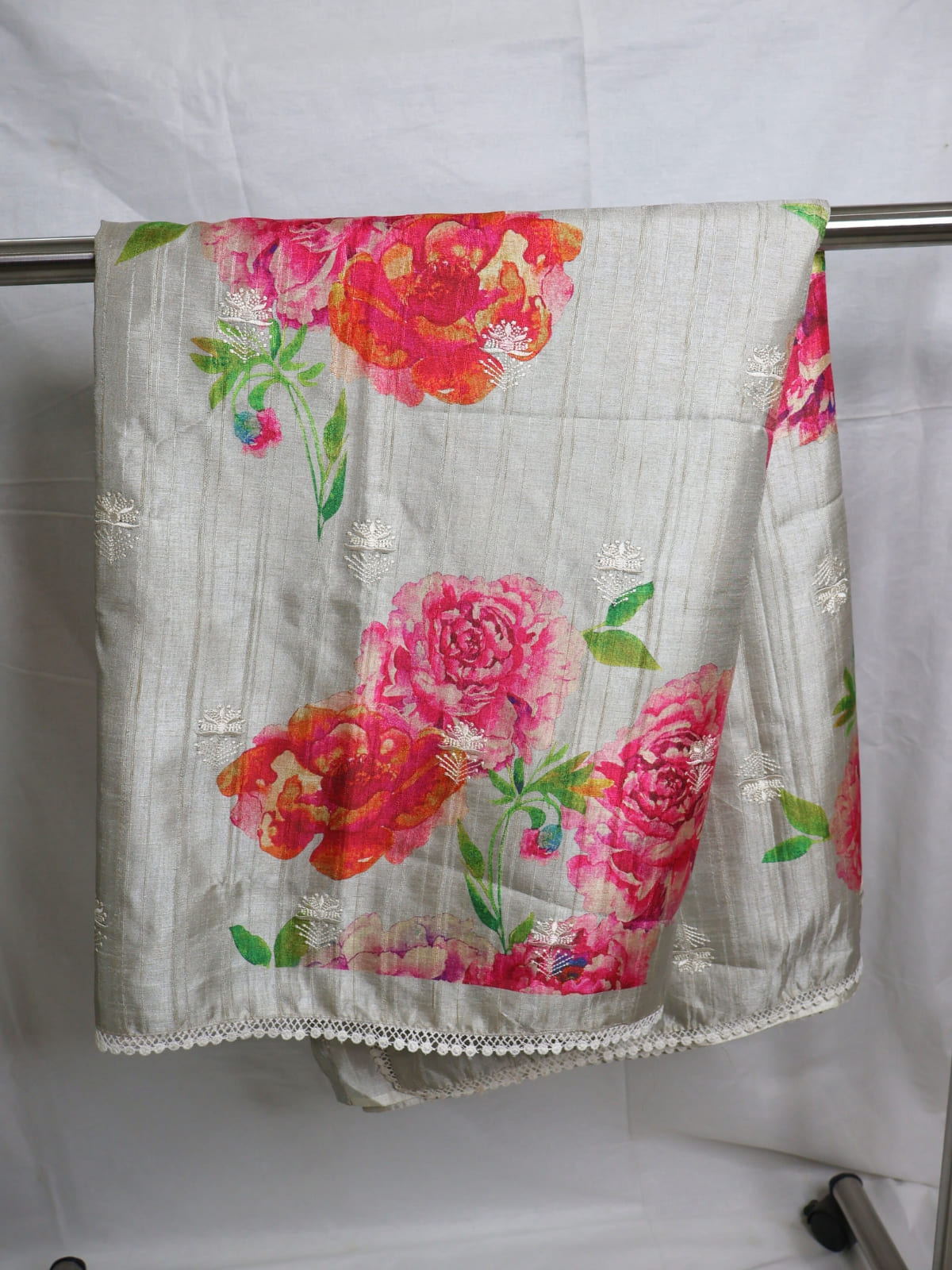 🌾 Design: Rich golden zari borders, intricate leaf and floral embroidery in warm earth tones