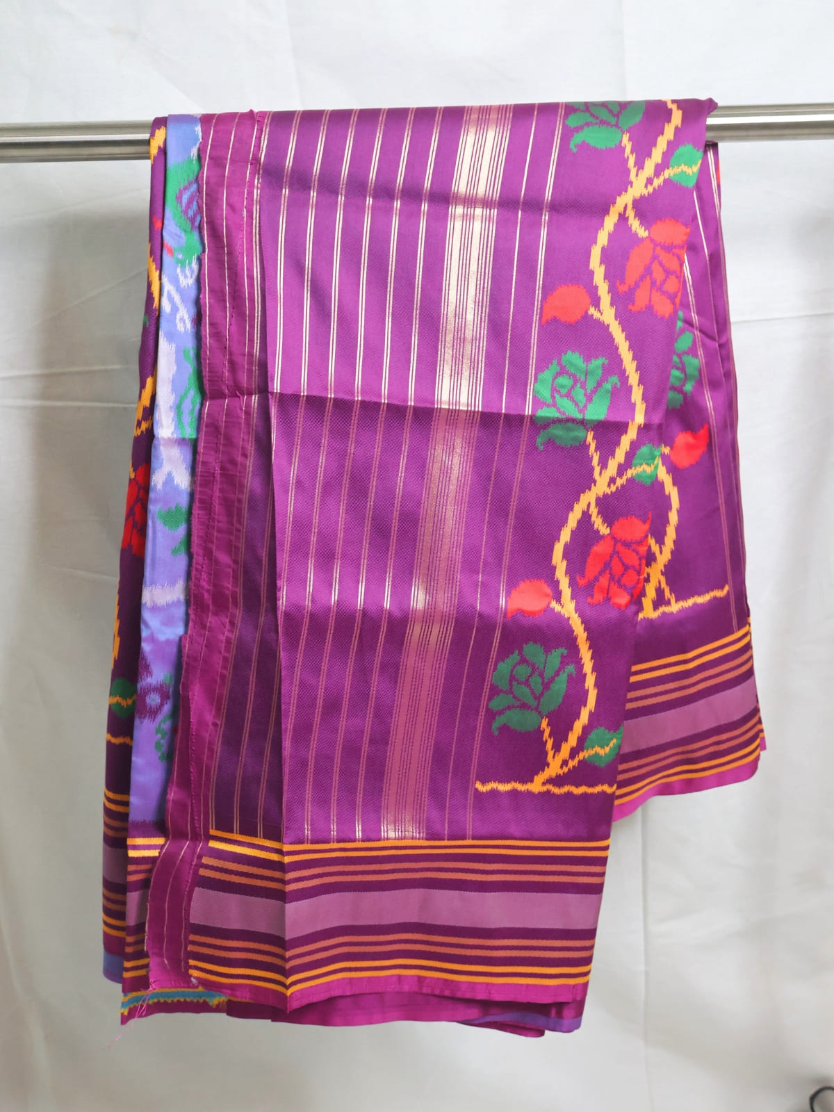 🌄 Design: Mountain-inspired motifs with silver zari, deep hues of indigo and maroon
